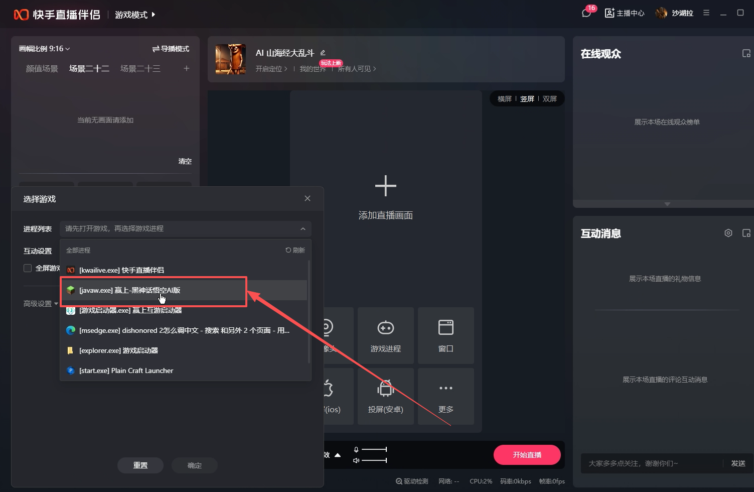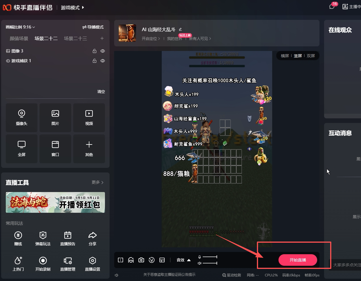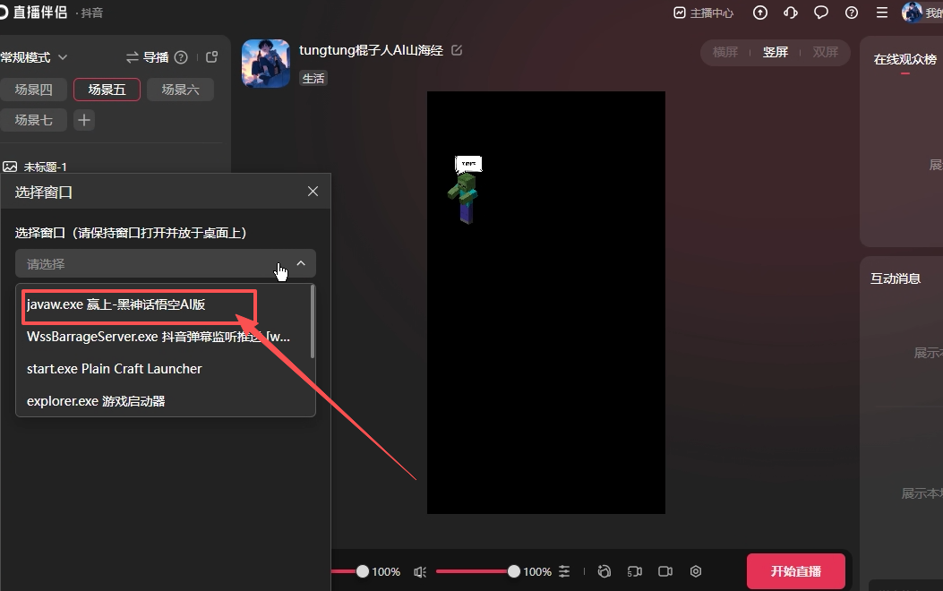 点击开始直播,开播后在聊天框里发送几条弹幕消息,游戏会提示标题:登录成功,即代表连接弹幕成功