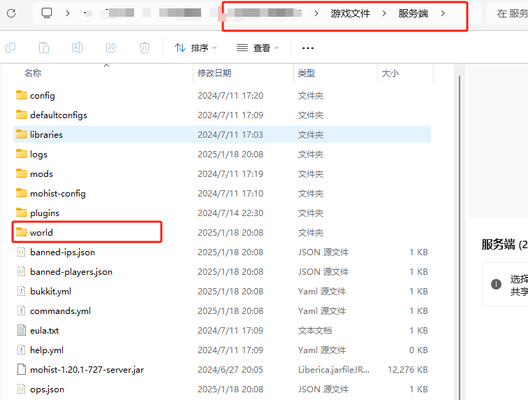 修复方法: 将目录:游戏文件/服务端/world 文件夹删除 即可