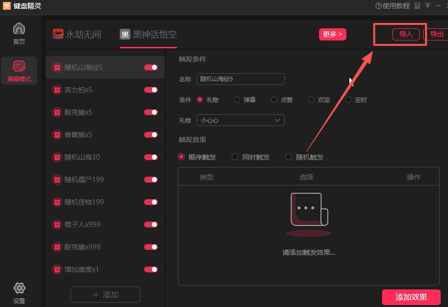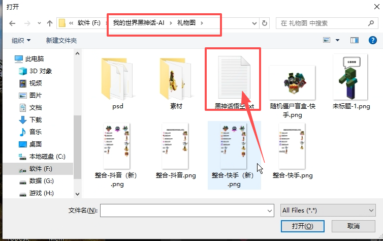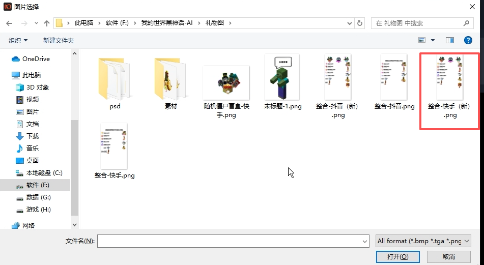 然后选择添加素材-》添加图片,选中这几张图片,图片位置在游戏文件夹中的礼物图里。