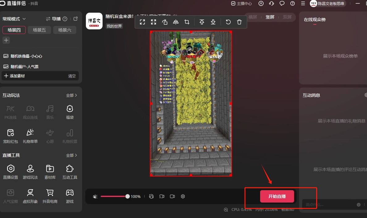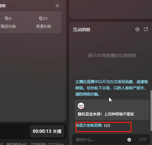点击开始直播,开播后在聊天框里发送几条弹幕消息,游戏会提示标题:登录成功,即代表连接弹幕成功
